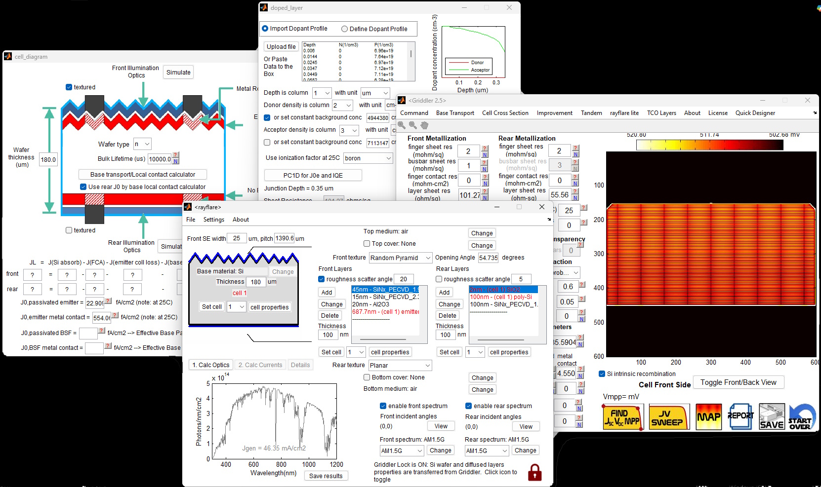 2. Integration with PC1D doped layer calculations and interface to optics simulation programs